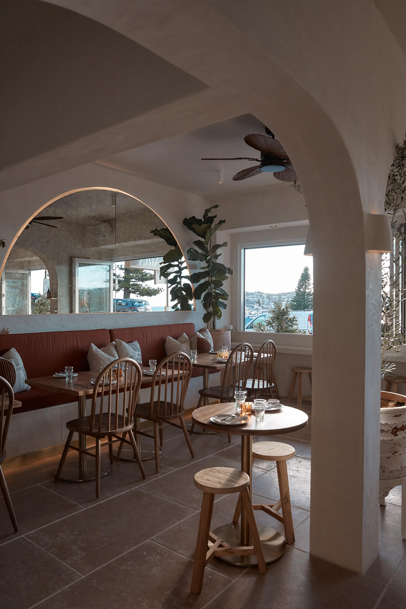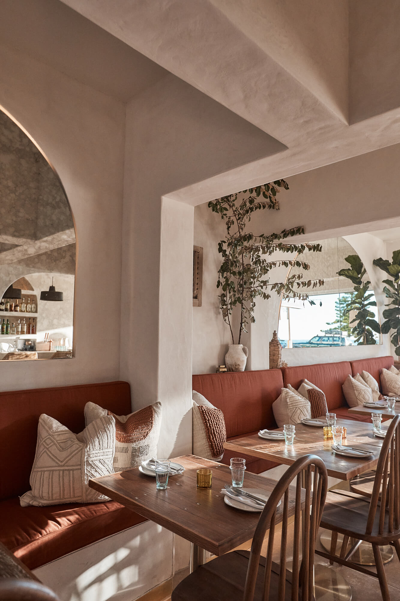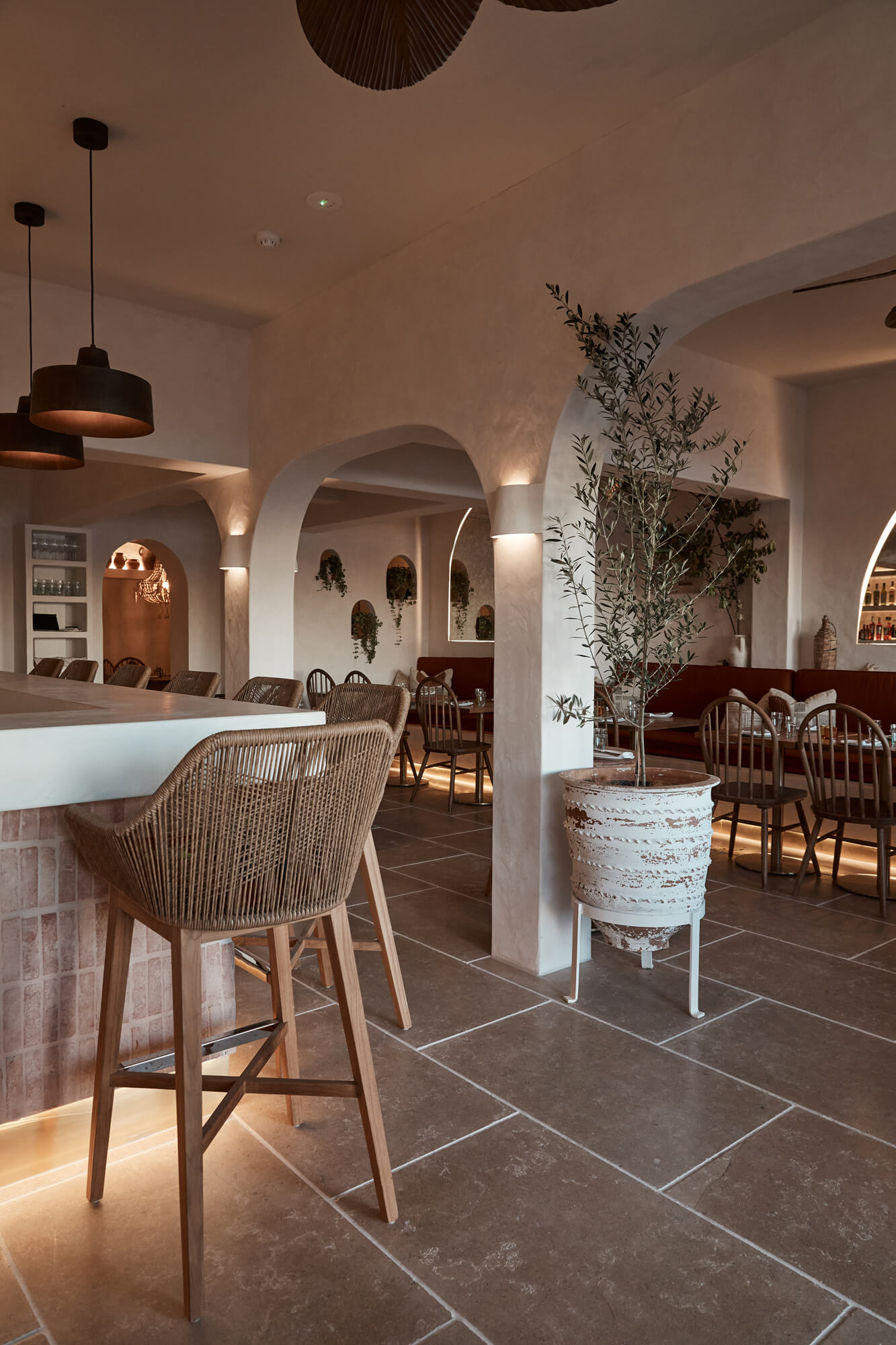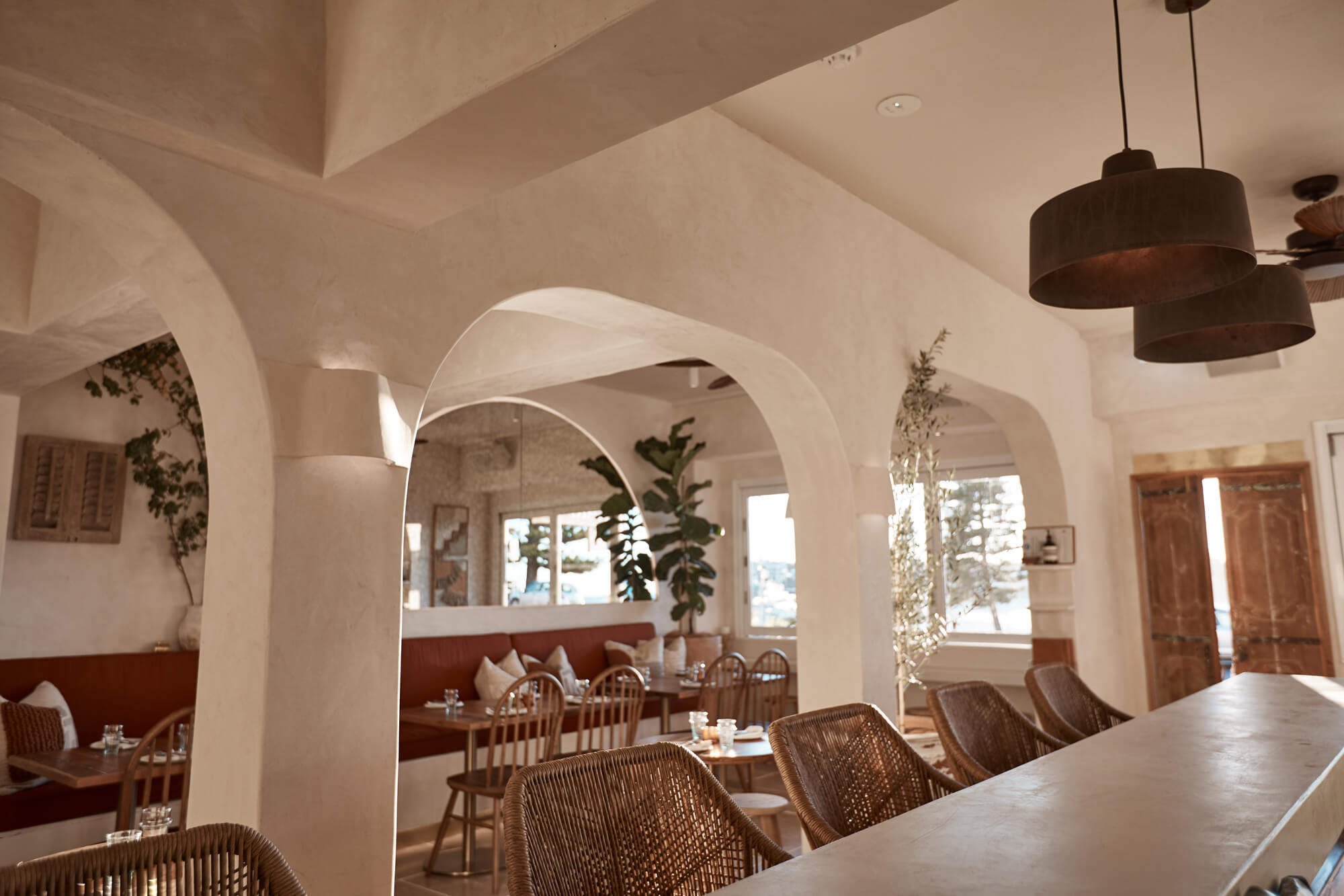 A true reflection of Mediterranean elegance, Ikaria Bondi showcases high-end craftsmanship and a seamless blend of natural textures. Microcement walls flow throughout, extending to the bespoke bar bench and tops, creating a refined, organic aesthetic. Handmade feature tiles and natural stone floors add depth and character, while custom in-built joinery—expertly crafted by Nomad Built carpenters—enhances both form and function. A full upgrade to the commercial kitchen ensures top-tier performance, supporting this vibrant and bustling Mediterranean restaurant and bar.