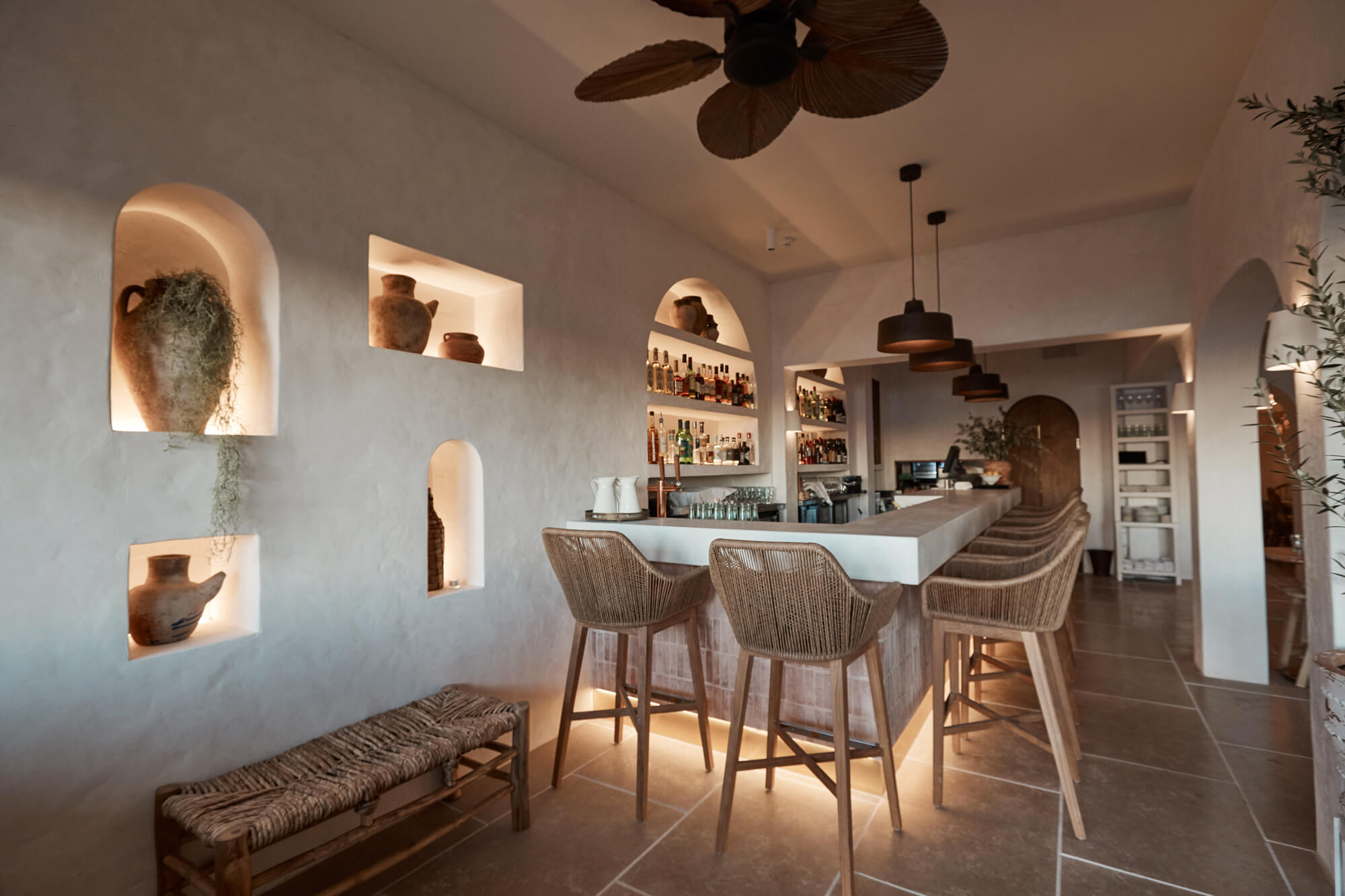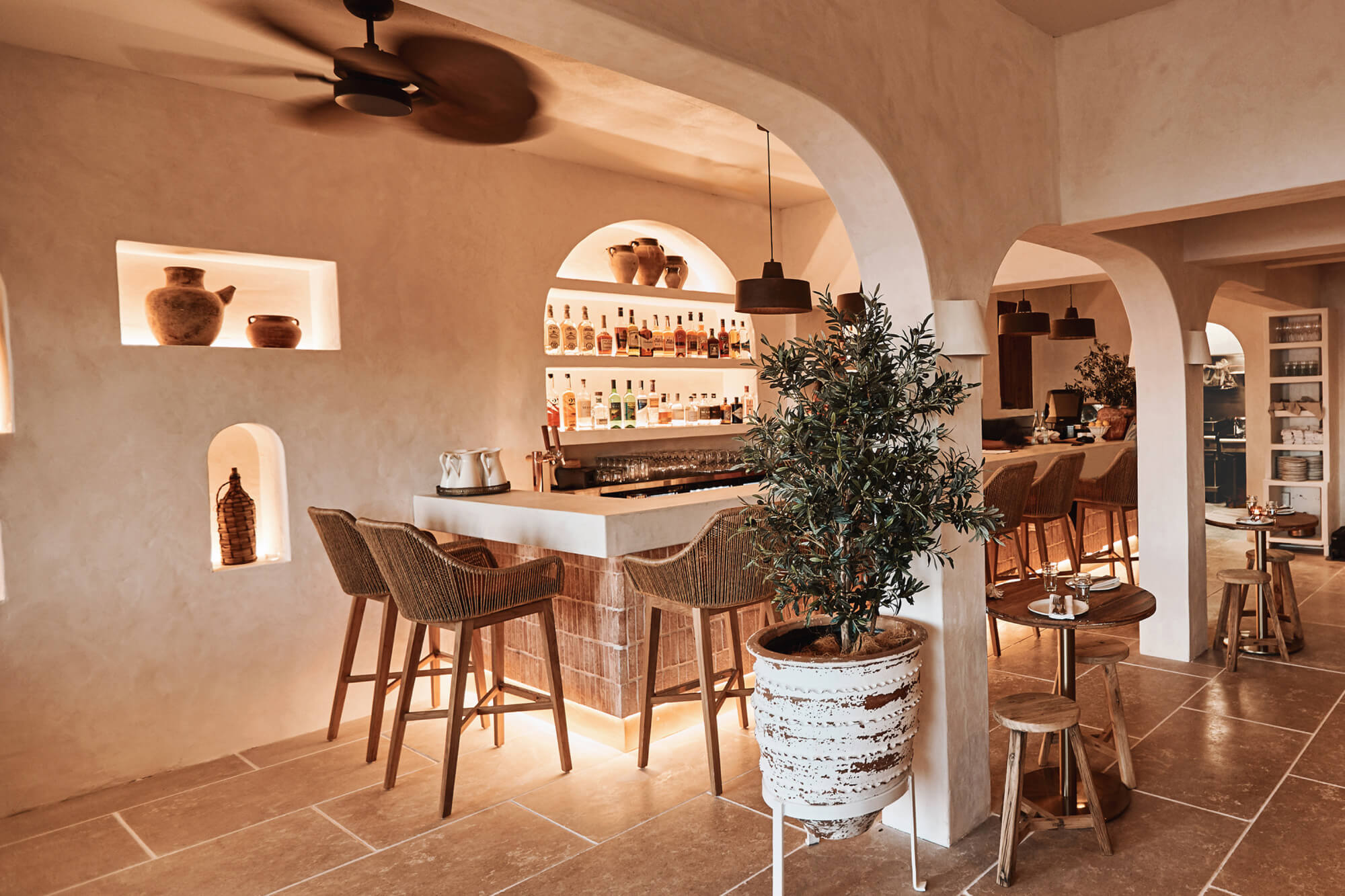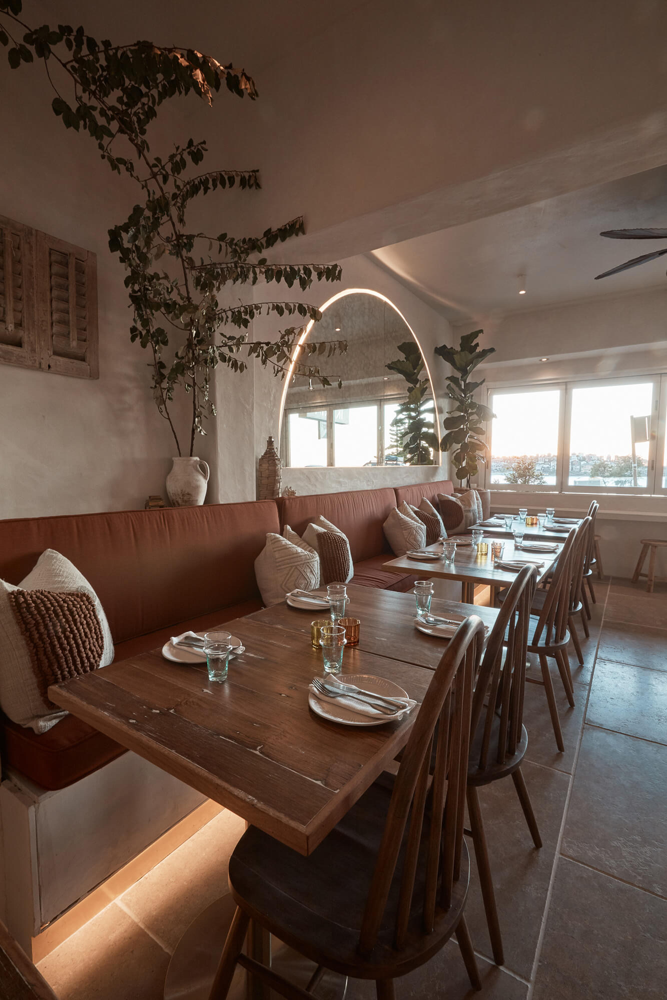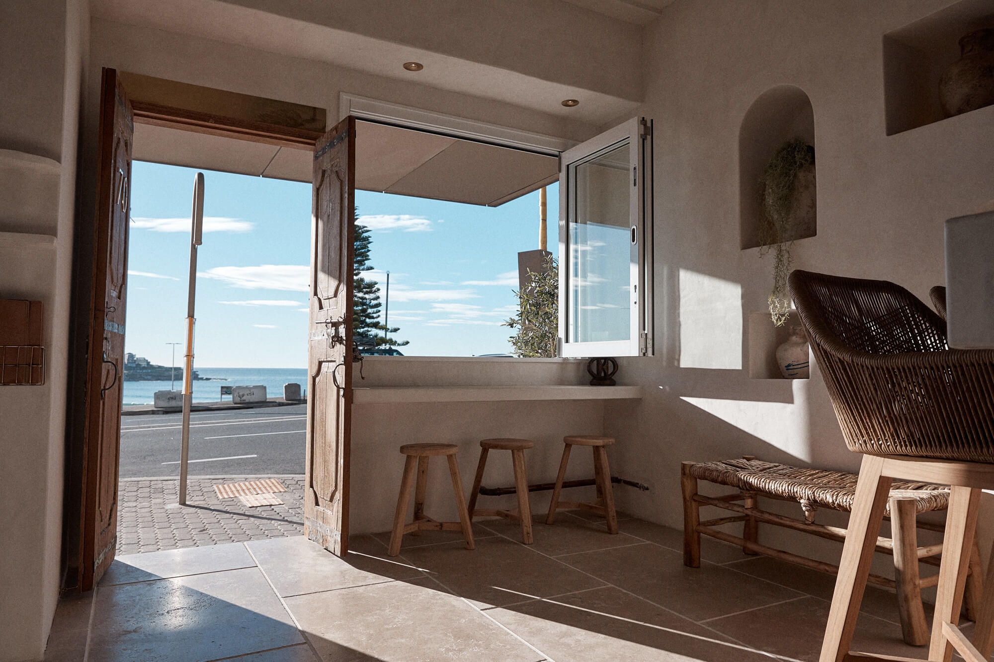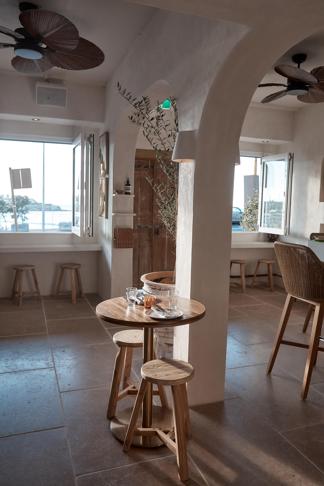 A true reflection of Mediterranean elegance, Ikaria Bondi showcases high-end craftsmanship and a seamless blend of natural textures. Microcement walls flow throughout, extending to the bespoke bar bench and tops, creating a refined, organic aesthetic. Handmade feature tiles and natural stone floors add depth and character, while custom in-built joinery—expertly crafted by Nomad Built carpenters—enhances both form and function. A full upgrade to the commercial kitchen ensures top-tier performance, supporting this vibrant and bustling Mediterranean restaurant and bar.