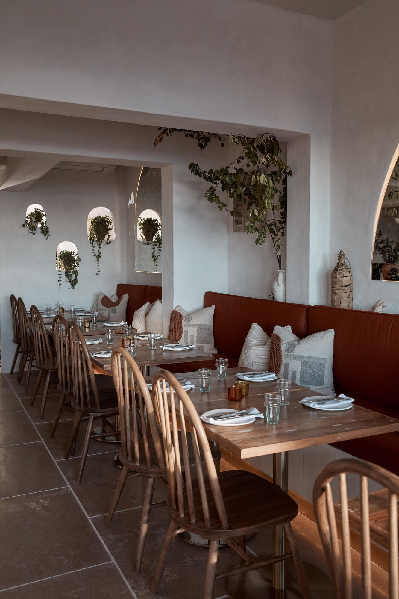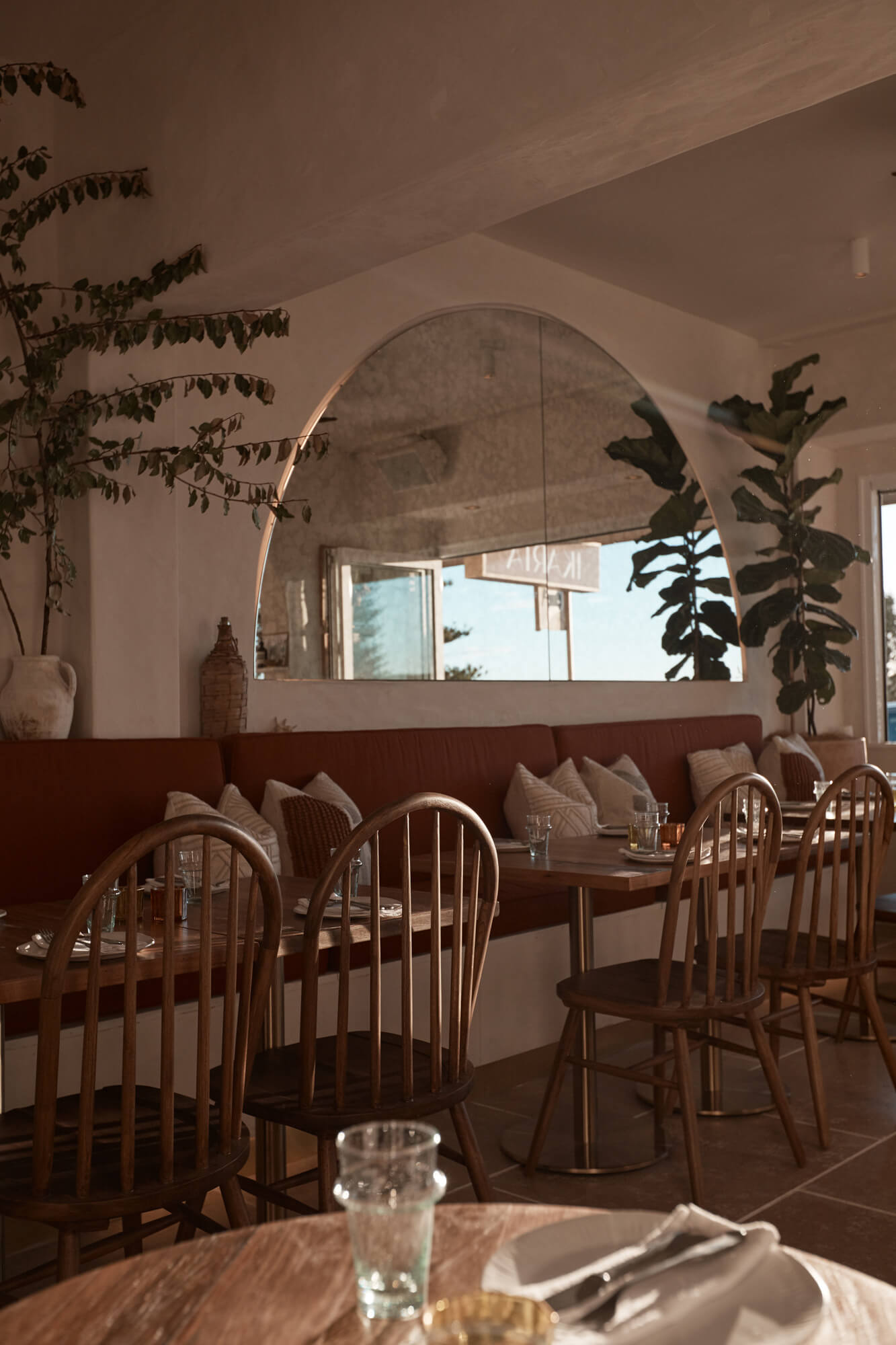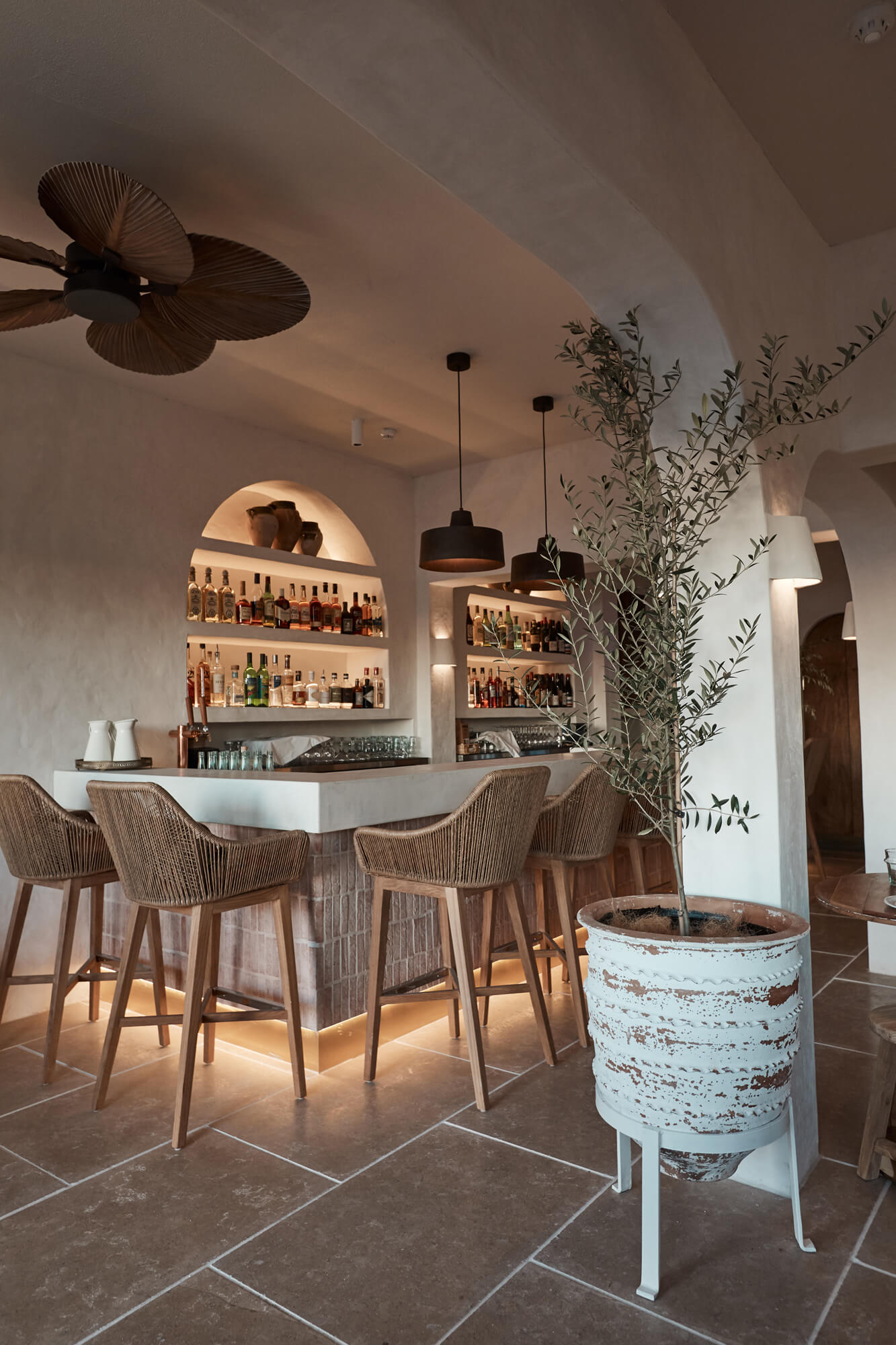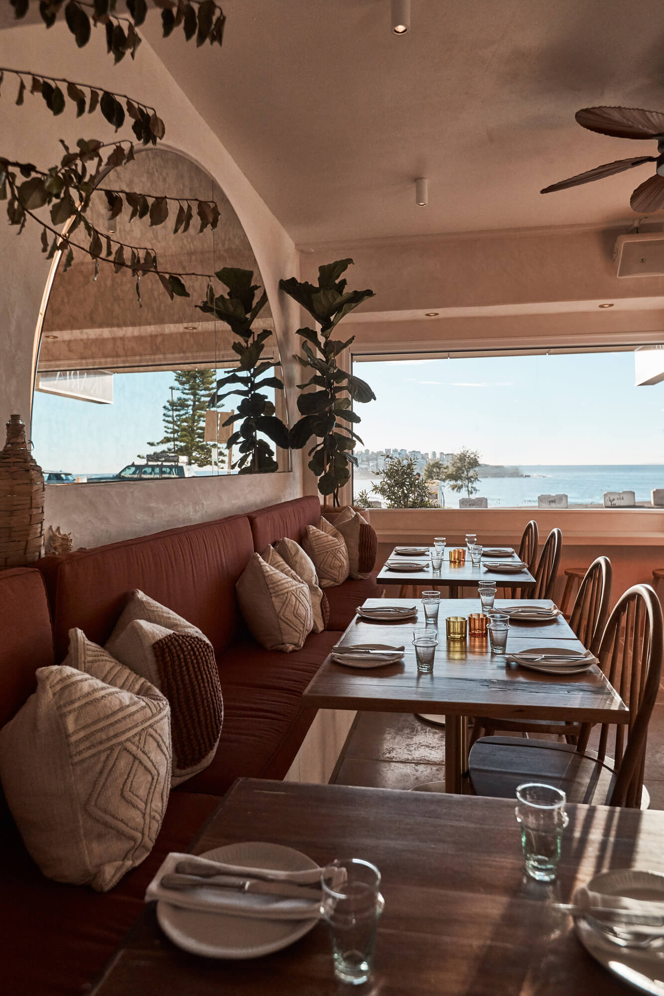 A true reflection of Mediterranean elegance, Ikaria Bondi showcases high-end craftsmanship and a seamless blend of natural textures. Microcement walls flow throughout, extending to the bespoke bar bench and tops, creating a refined, organic aesthetic. Handmade feature tiles and natural stone floors add depth and character, while custom in-built joinery—expertly crafted by Nomad Built carpenters—enhances both form and function. A full upgrade to the commercial kitchen ensures top-tier performance, supporting this vibrant and bustling Mediterranean restaurant and bar.