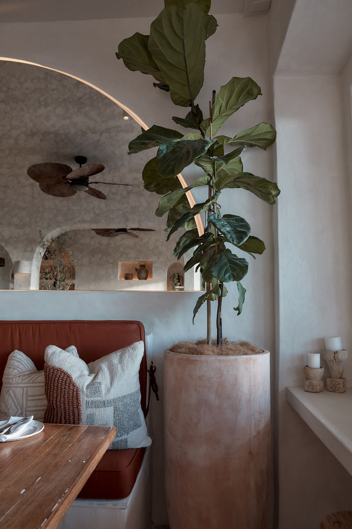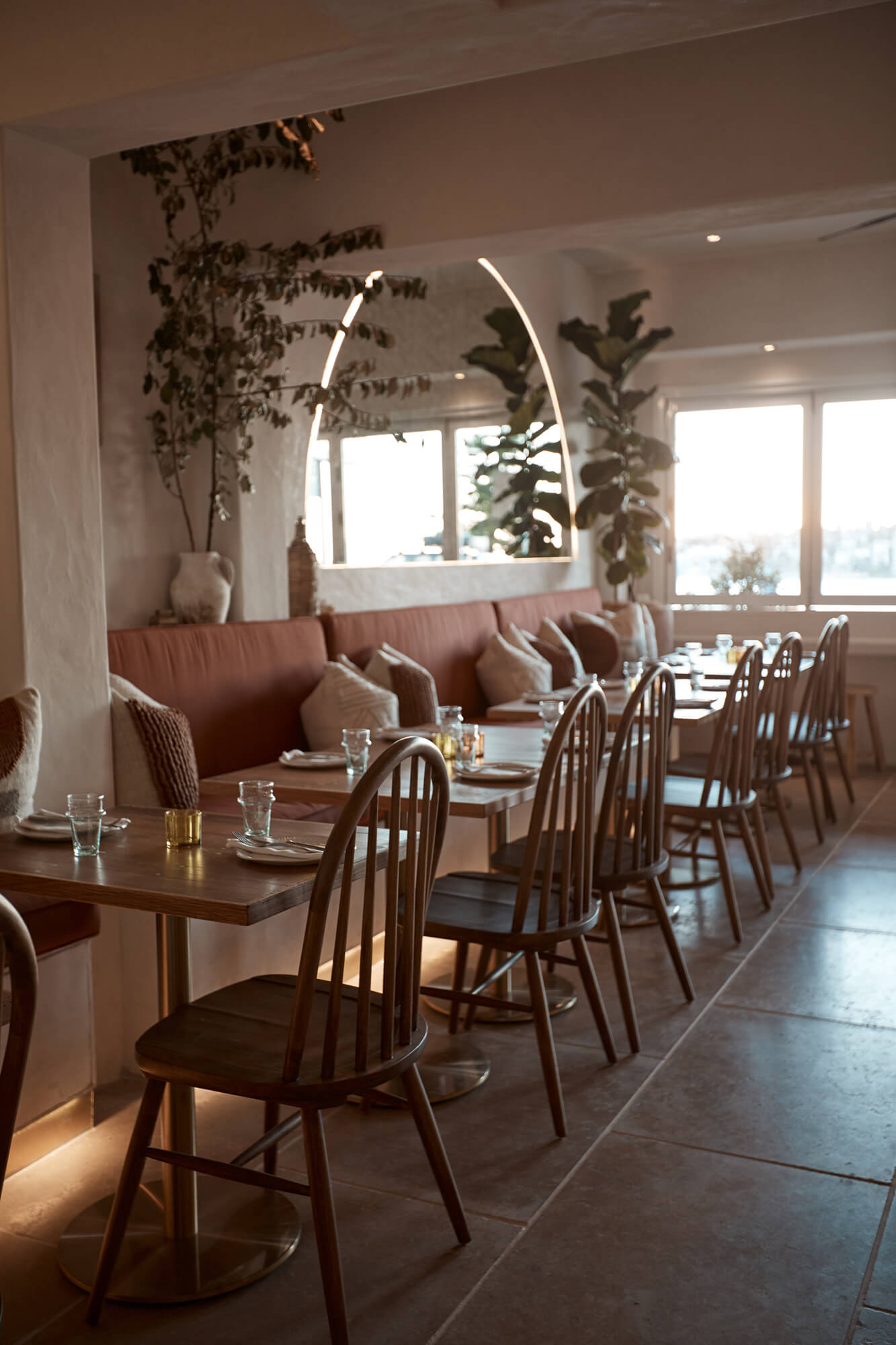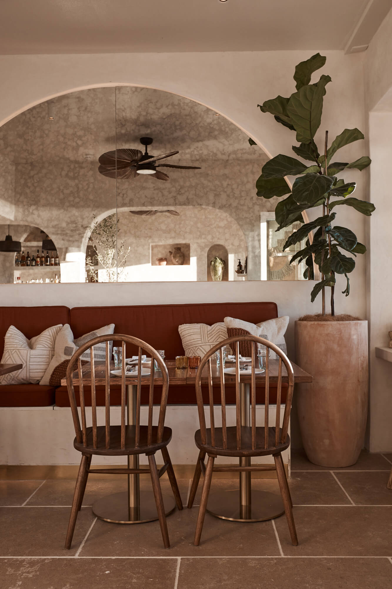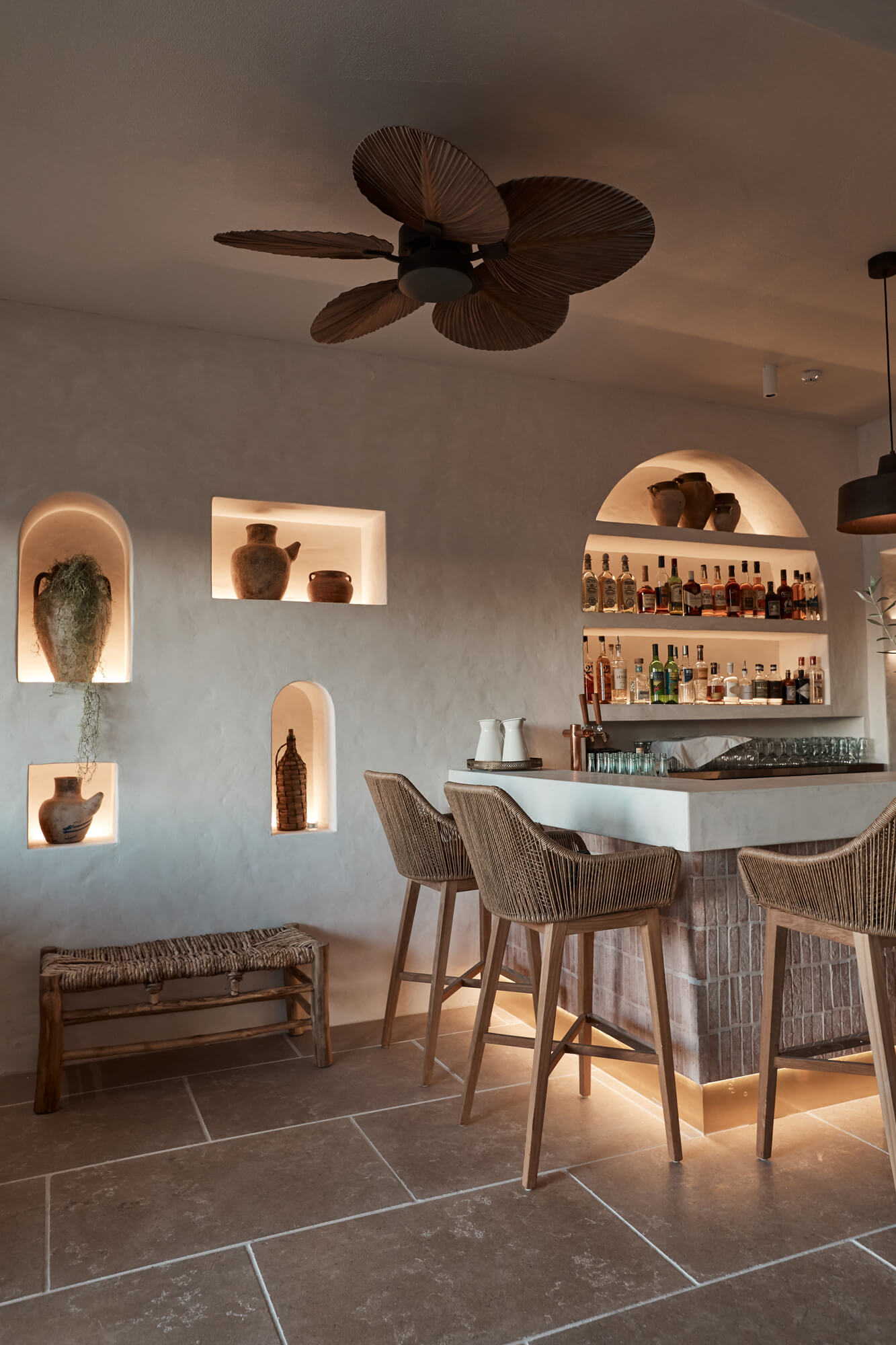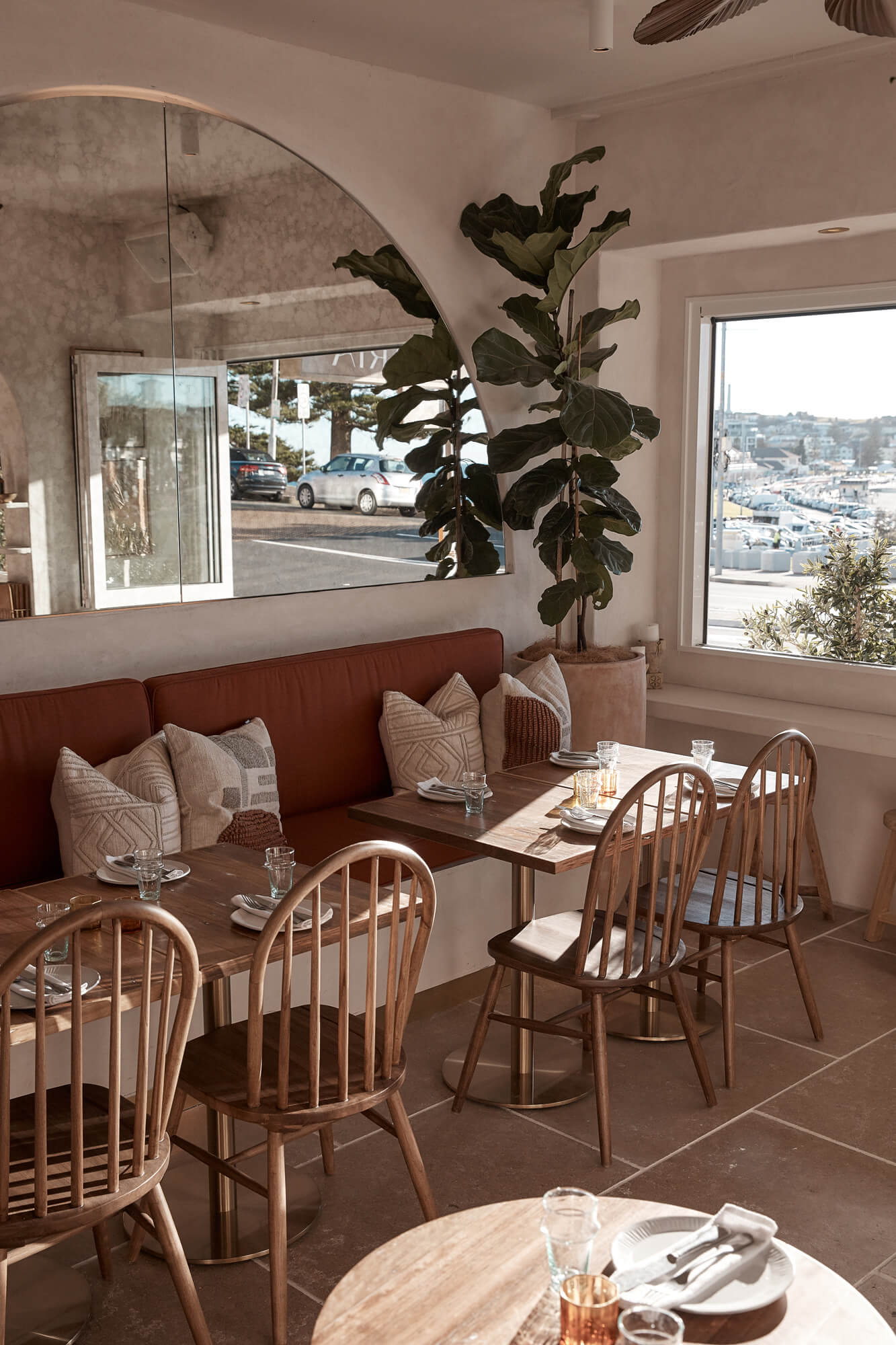 A true reflection of Mediterranean elegance, Ikaria Bondi showcases high-end craftsmanship and a seamless blend of natural textures. Microcement walls flow throughout, extending to the bespoke bar bench and tops, creating a refined, organic aesthetic. Handmade feature tiles and natural stone floors add depth and character, while custom in-built joinery—expertly crafted by Nomad Built carpenters—enhances both form and function. A full upgrade to the commercial kitchen ensures top-tier performance, supporting this vibrant and bustling Mediterranean restaurant and bar.
